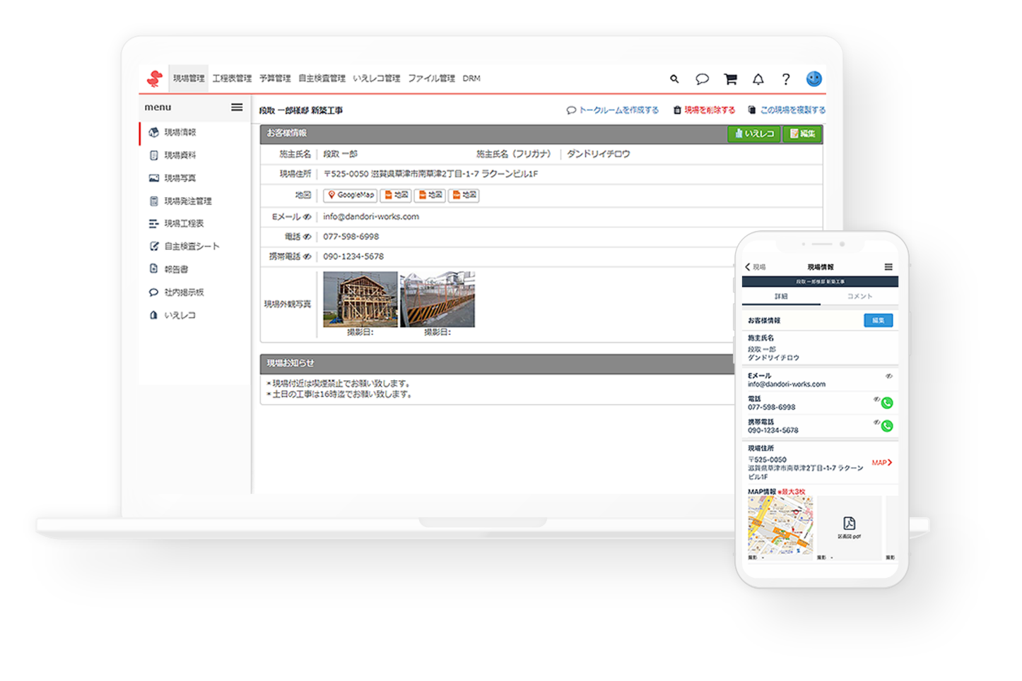 現場写真や図面・仕様書などすべての現場情報を一元管理。資料や工程表をリアルタイムで共有し、建築現場の業務改善と生産性向上を実現します。