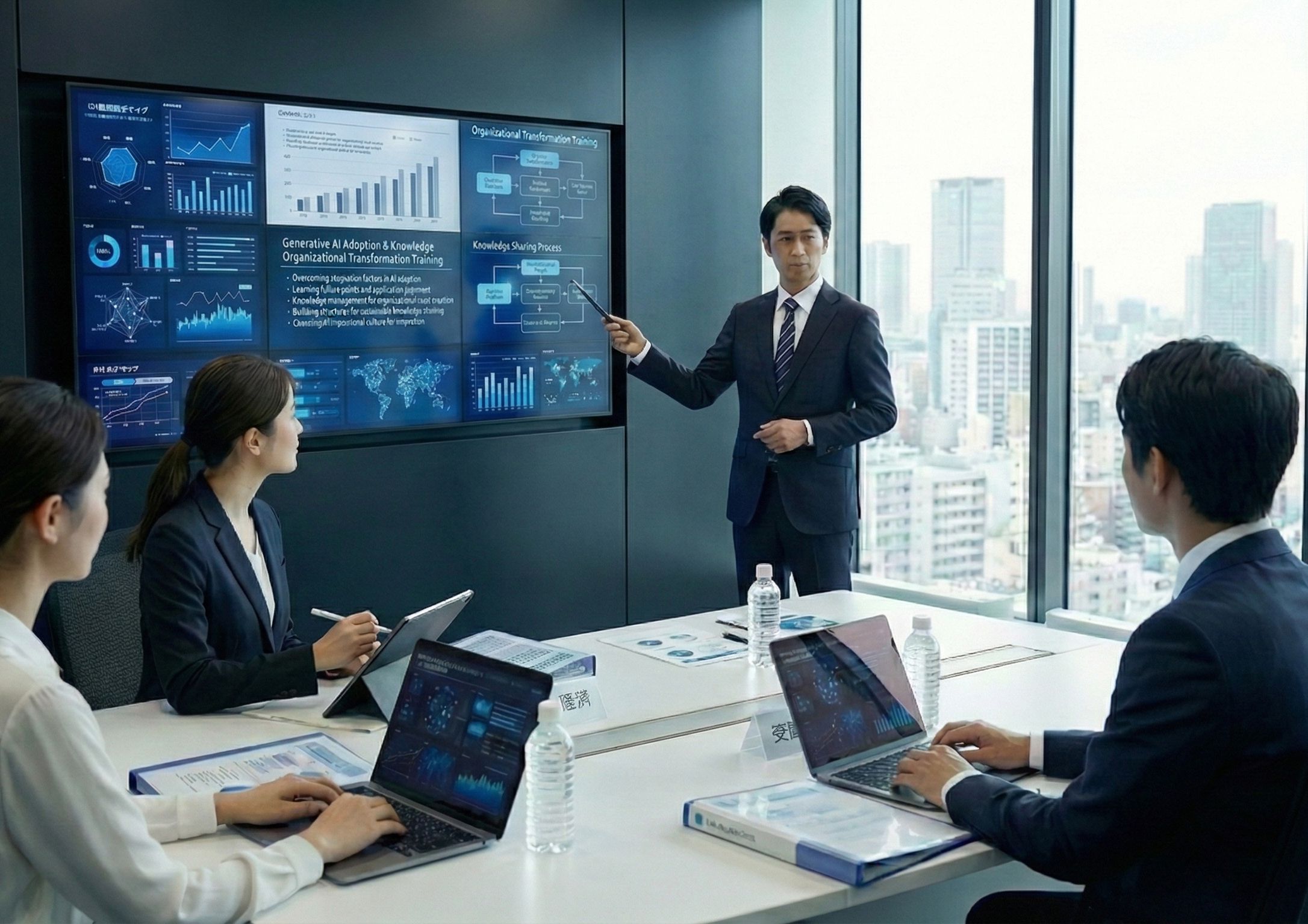 生成AIを「導入したが定着しない」「成果が出ない」「現場で使われない」といった停滞要因を解消し、組織として継続的に成果を生む状態へ移行するための研修です。生成AI活用の失敗要因と適用判断を体系的に学び、ナレッジマネジメントにより属人化した知見を組織資産へ転換します。